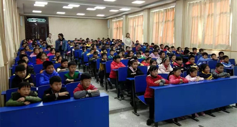 紧张刺激的现场教学活动结束后,民警陈琛与龚瑾在但店小学大讲堂进行了生动有趣的安全知识讲座。
