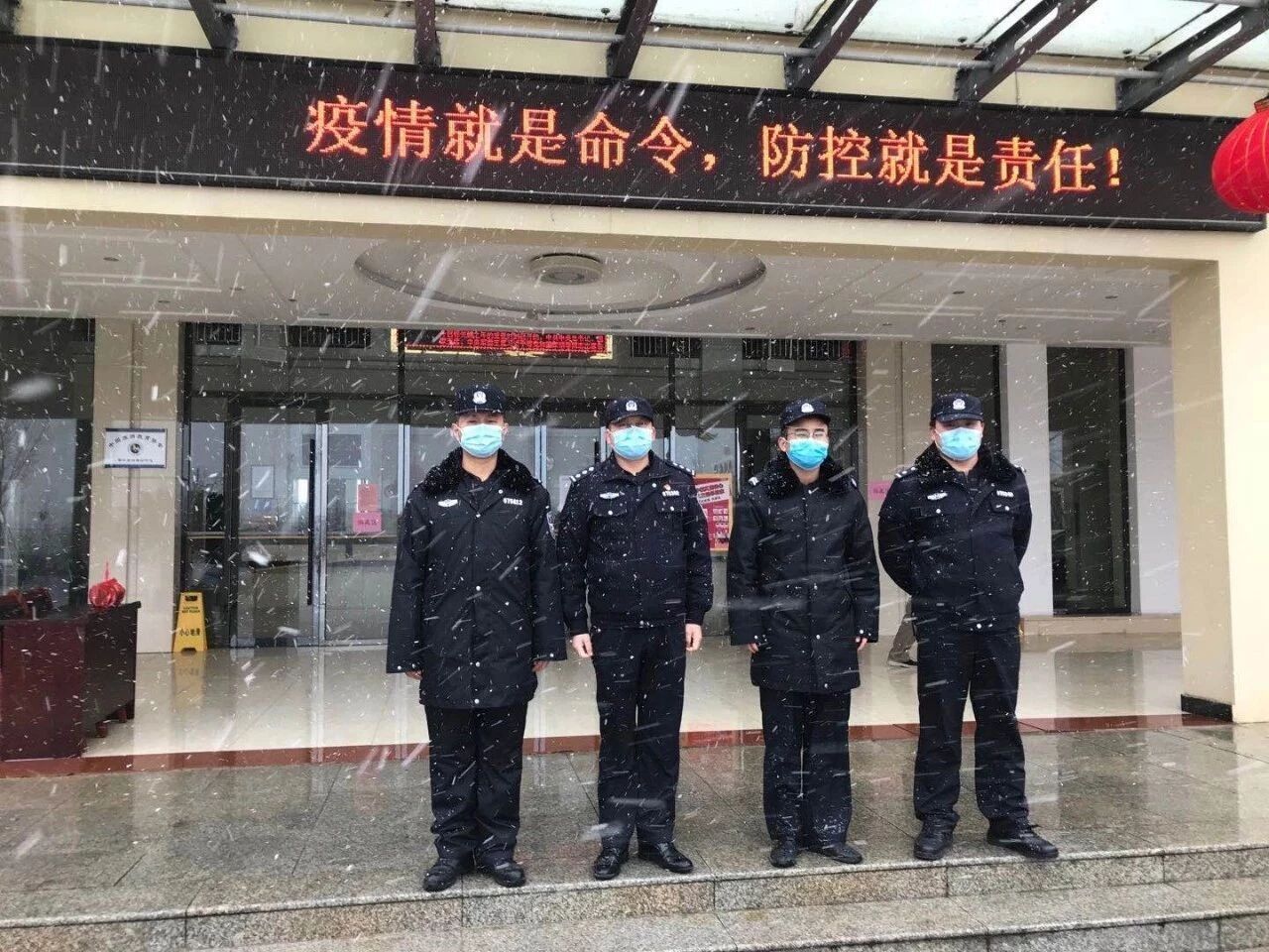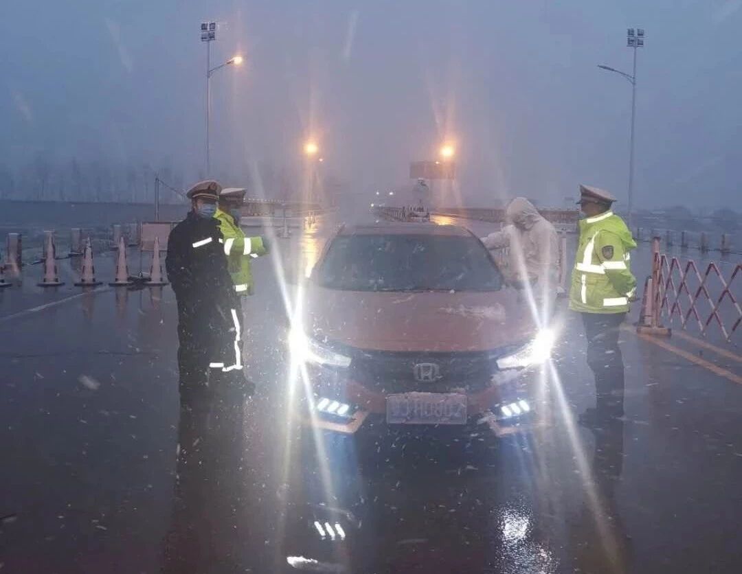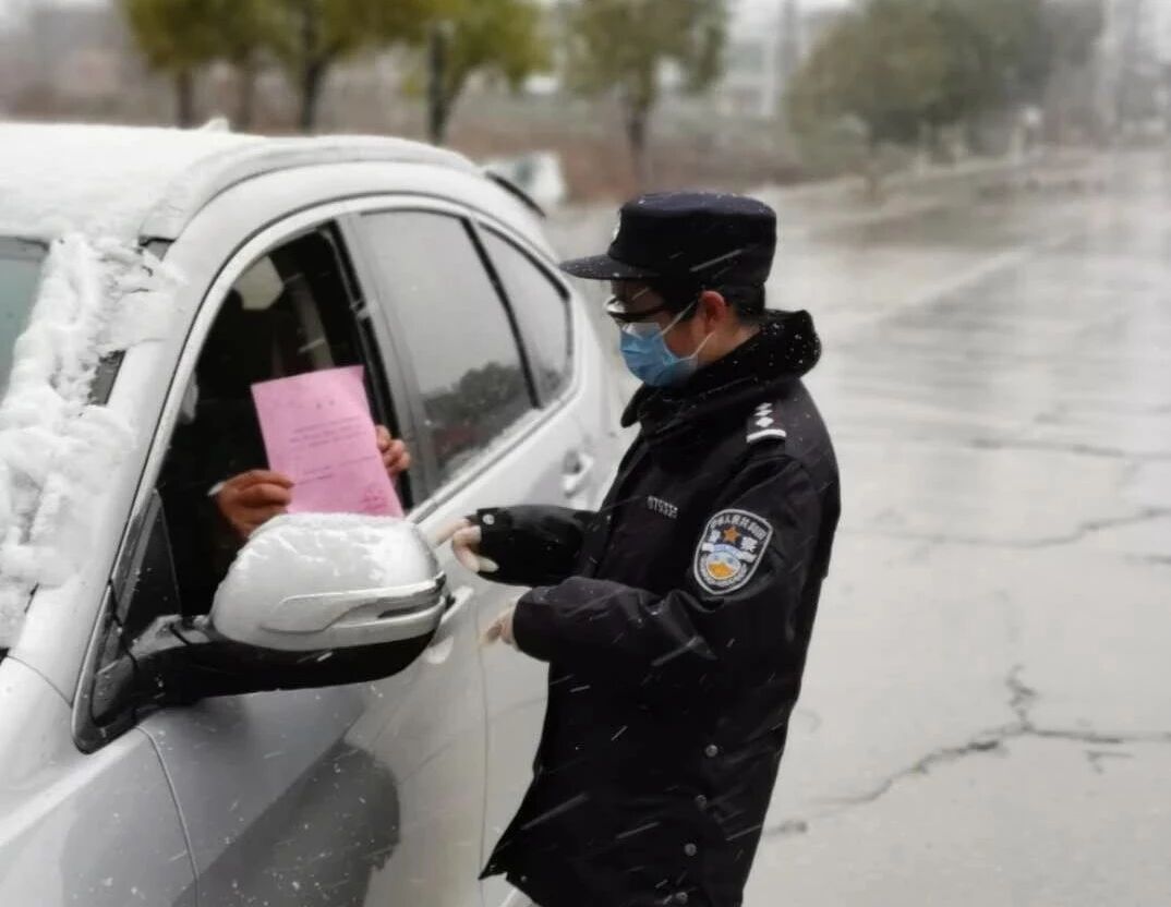 2月15日上午,团风开始下起了小雪,到了中午雪越下越大,在大雪纷飞中所有卡口执勤的民辅警顶着严寒和风雪,密切关注着道路状况,认真检查每一辆车辆。每当有机动车靠近检查点,民警立即挥手示意车辆减速接受检查,“您从哪里来呀?准备去哪里呀?车上有几个人?有通行证吗?”“为了防控疫情,我们在此设卡检查,请配合我们的工作”“雪天路滑,请一定小心慢行,注意交通安全”……