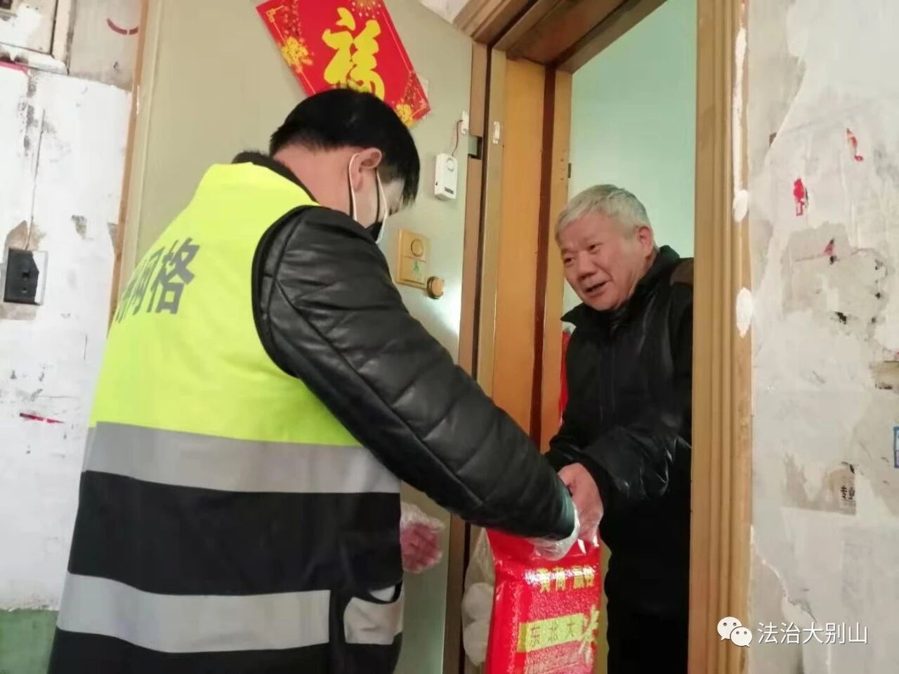 市委政法委副书记朱桂霞向基层网格员送去口罩、手套和消毒液