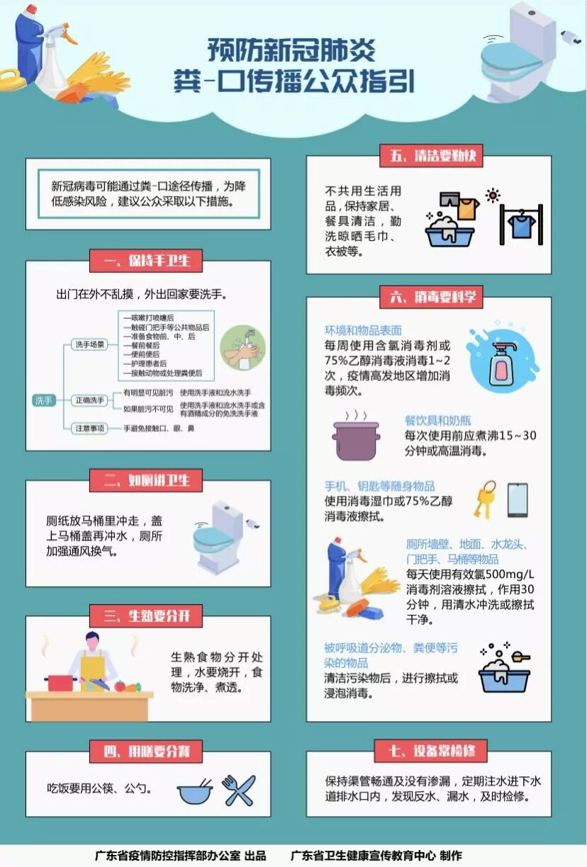 新冠病毒可能通过粪-口途径传播,为了降低感染风险,广东省疫情防控指挥办最新发出了《预防新冠肺炎粪-口传播公众指引》,七大要点一一告诉公众怎么办。