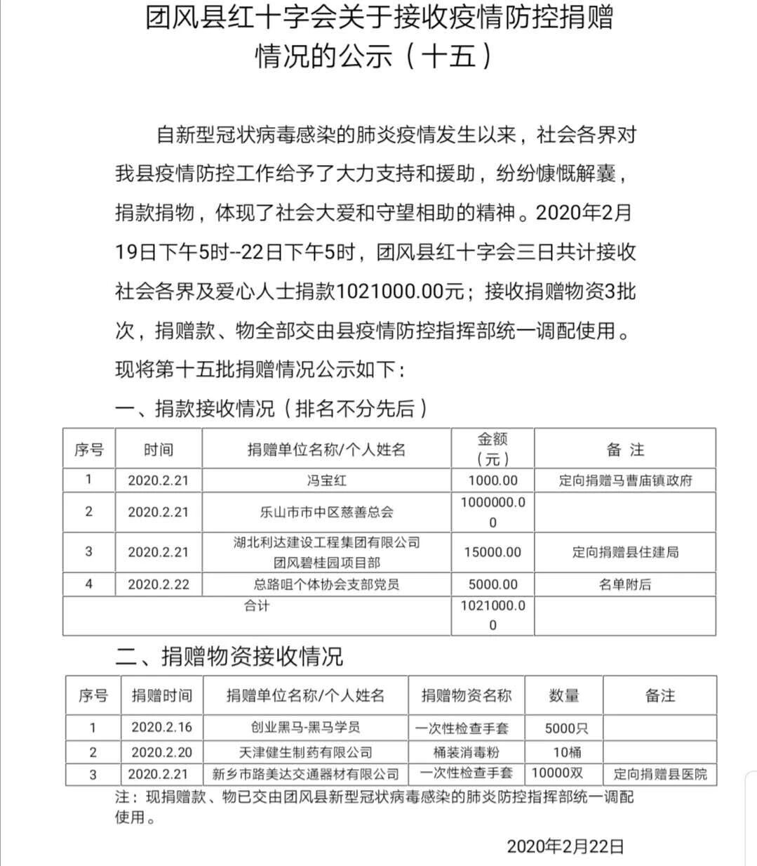 团风县红十字会关于接收疫情防控捐赠 情况的公示(十五)