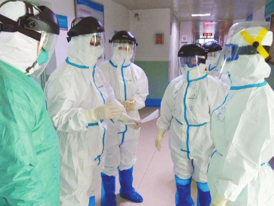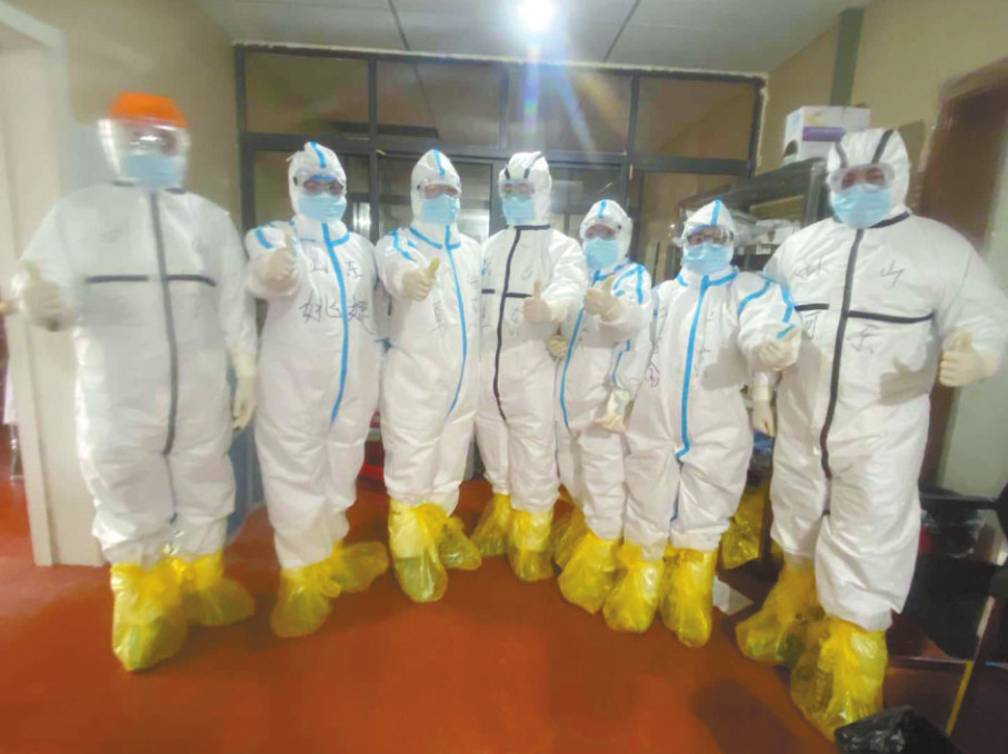 2月19日上午,我说:“我是蕲春医疗队年龄最大的,也是入党几十年的老党员,大家不要害怕,我今天带领大家进病房查房,只要我们按院感防护要求去做,一定能完成任务。”听后,庞怀刚、赵建厂两位年轻大夫安静下来,坚定跟着我穿着防护服进入病房。走出病房出仓,恰好遇到采访的记者,他们看到我仅穿着一身薄薄的内衣惊呆了,问: “你们穿的这么少不冷吗?”我说: “没办法,为了穿脱防护服方便,不污染暴露自己,我们只能这样。”