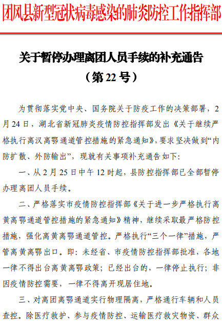 关于暂停办理离团人员手续的补充通告 (第22号)