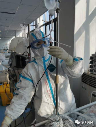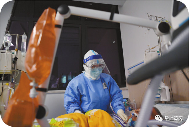 凌晨三点,湖南医疗队重症医学科护理组长王曼在护理上了呼吸机的昏迷病人。通讯员 李奇 摄