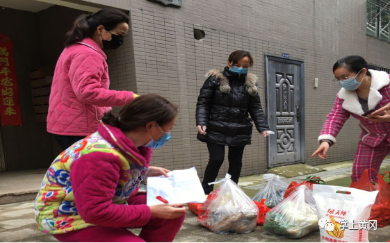 黄州东源城小区,包保党员徐小明带领三名女党员志愿者,按居民在电商订单分配生活物资,送到每家门口。记者 苑晓群 摄