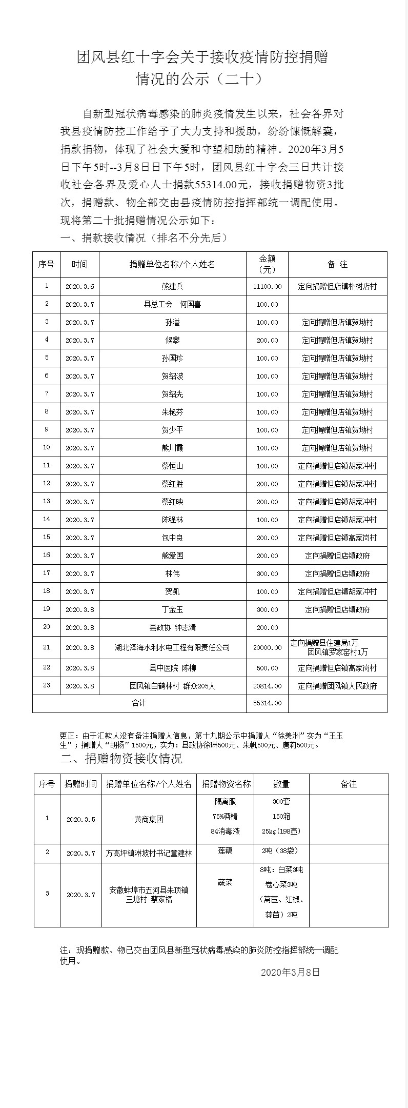 团风县红十字会关于接收疫情防控捐赠 情况的公示(二十)