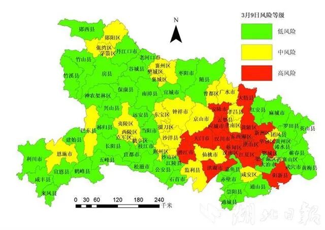 与3月7日相比,全省新增加8个低风险市区(咸丰县、江陵县、崇阳县、丹江口市、松滋市、嘉鱼县、随县、大冶市),5个高风险市区调至中风险(荆州市城区、监利县、十堰市城区、孝昌县、随州市城区)。