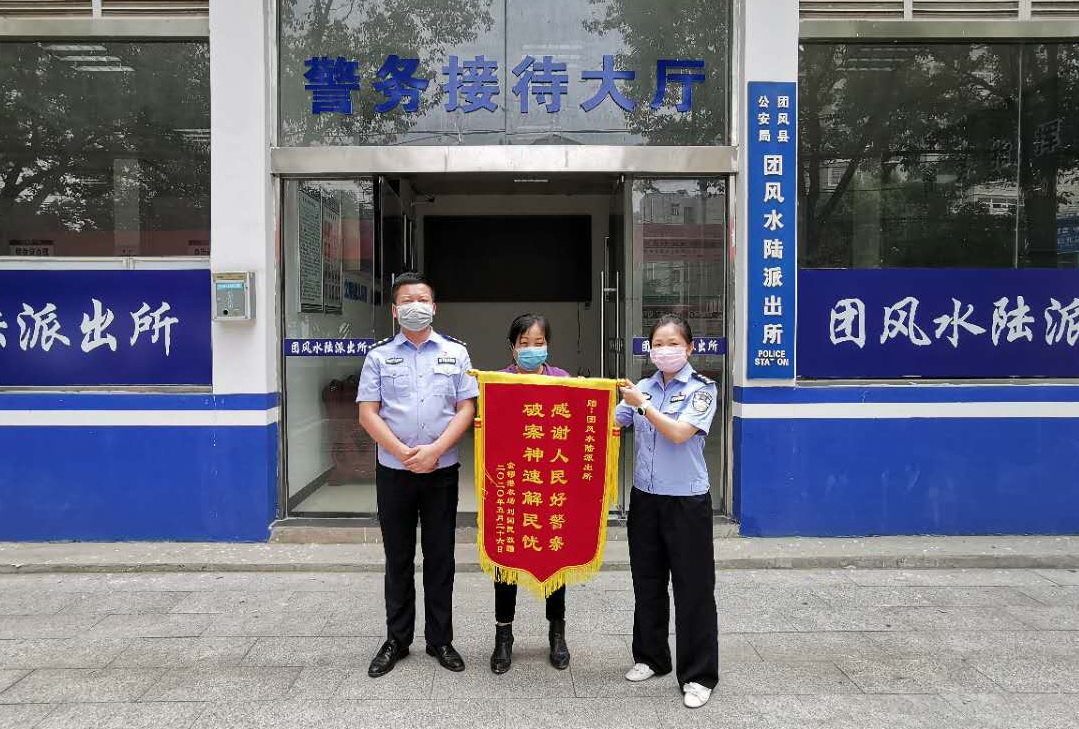“谢谢警察同志!”2020年5月27日上午,湖北省团风县团风镇金锣岗村村民汪某的家属将一面印有“感谢人民好警察,破案神速解民忧”的锦旗送到了团风水陆派出所,感谢民警为其找回丢失的种牛。