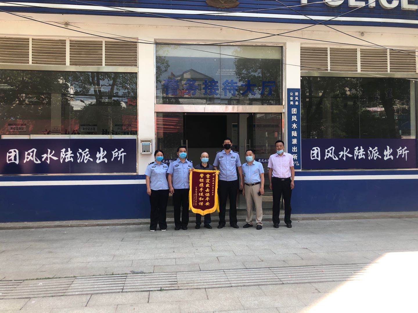 当天下午15时许,团风水陆派出所接到中国农业银行团风分行工作人员报警称:有人在山河花园小区旁农行闹事,请求处理。接到报警后,民警迅速赶到现场处置。经查:夏某(男,25岁,淋山河镇人,系精神障碍患者)午后与父亲吵架后心情郁闷导致病情复发,独自跑到位于团风镇山河花园小区旁的中国农业银行团风分行,并站在椅子上无故谩骂银行工作人员。民警赶到及时将其控制住,在其家属的陪同下将其送医治疗。6月1日,中国农业银行团风分行的给民警送来一面写有“雷霆出击保平安”的锦旗,表达了对民警的真诚感谢。