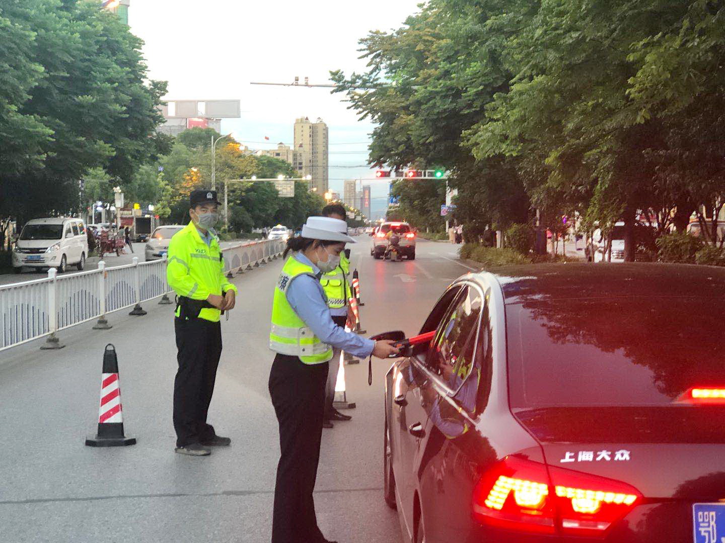 当晚的行动中,执勤民辅警携带执法记录仪、酒精检测仪、圆形锥桶等准备,在城区和各乡镇重点路段设置临时检查点,对过往机动车驾驶人逢车必查、逢疑必查,严格规范执法,严厉查处“三驾”、“三无”等重点交通违法行为,对查获的“酒麻木”绝不手软,杜绝“说情风”,迅速将违法信息上网,并严格依法处理。行动期间,参战民辅警还积极开展“一盔一带”整治工作,提醒广大交通参与者,牢固树立“安全带就是生命带,头盔就是护头盾”的交通安全意识,倡导广大市民对自己、对家人、对社会负责,自觉遵守交通法律法规,安全文明出行。