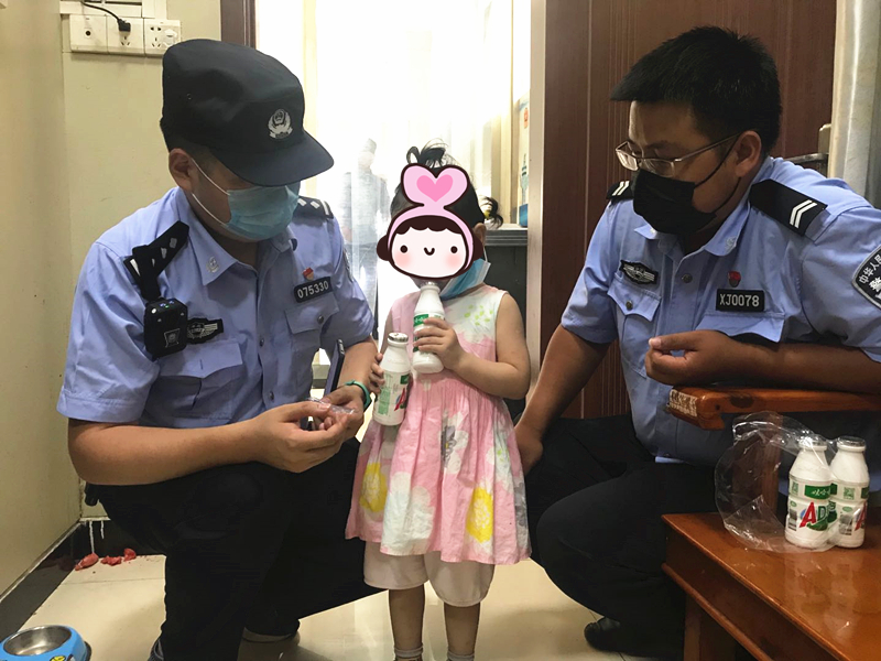 当天上午10时许,团风水陆派出所接到报警称:在团风镇黄商门口发现一名约两三岁的小女孩不停哭泣,身边无大人看管。接到报警后,值班民警迅速赶往现场,只见小女孩站在黄商门口嚎啕大哭吵着要爸爸妈妈,围观群众均表示没见过她。民警随即将其抱上警车带回派出所买来零食并化身“奶爸”细心照顾,等孩子情绪稳定,民警通过聊天发现孩子还是无法提供自己和家人的有效信息线索。无奈之下民警又在朋友圈和微信群展开了照片寻人行动,经过一个多小时的努力,大约11时30分许,民警终于找到了孩子的母亲林某,经了解,林某当天带着2岁半的女儿在黄商超市买东西与女儿走散。当心急如焚的林某赶到团风水陆派出所看到失而复得的“小可爱”喜极而泣,不停地对民警表示感谢。
