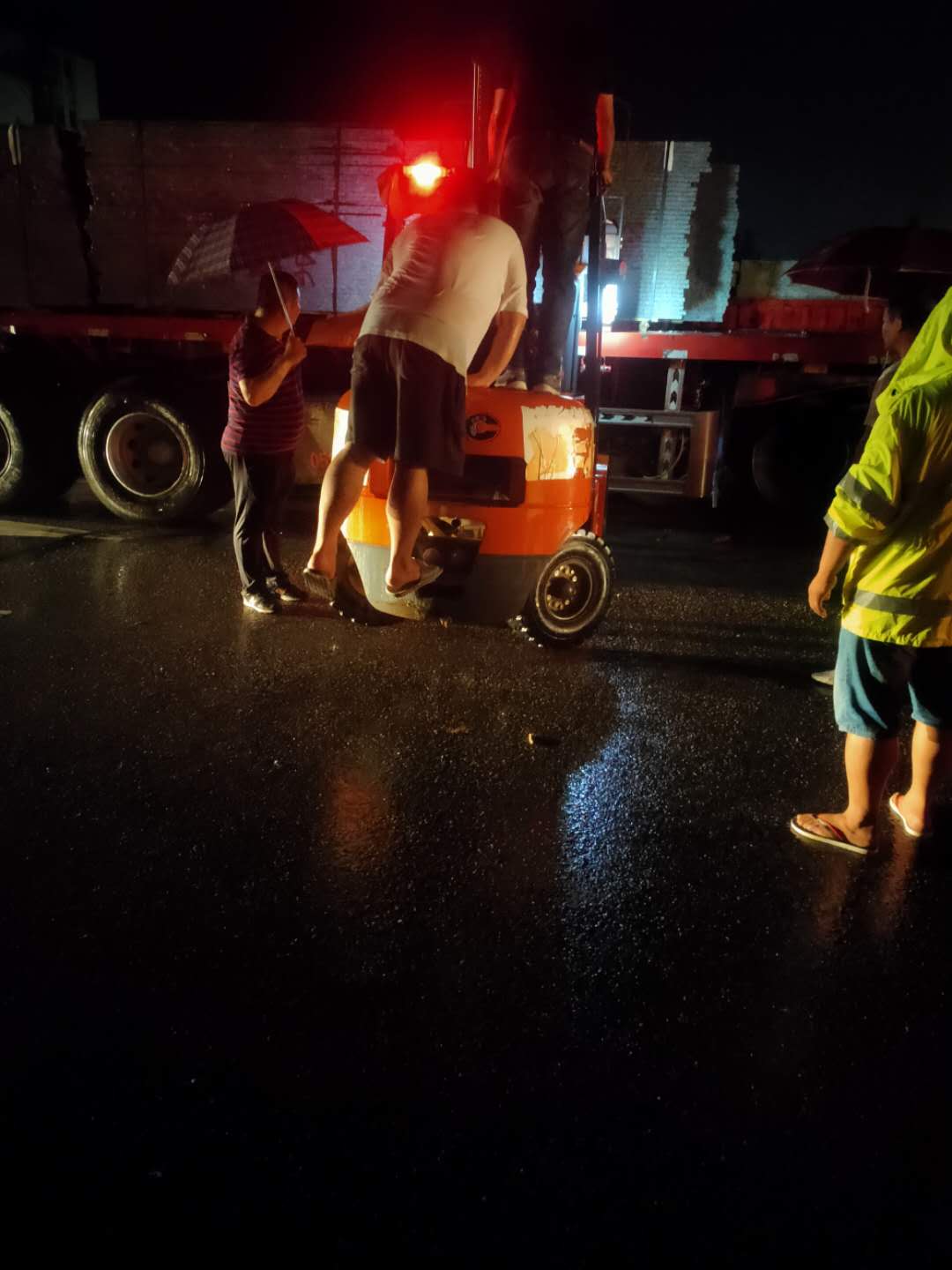 事故路段交通流量大,由于天气原因路面湿滑,加上天色已晚,如不妥善处置,极易导致交通拥堵,引发二次交通事故。林佑先同志向大队长叶翔和值班领导华桂明汇报请求增援。