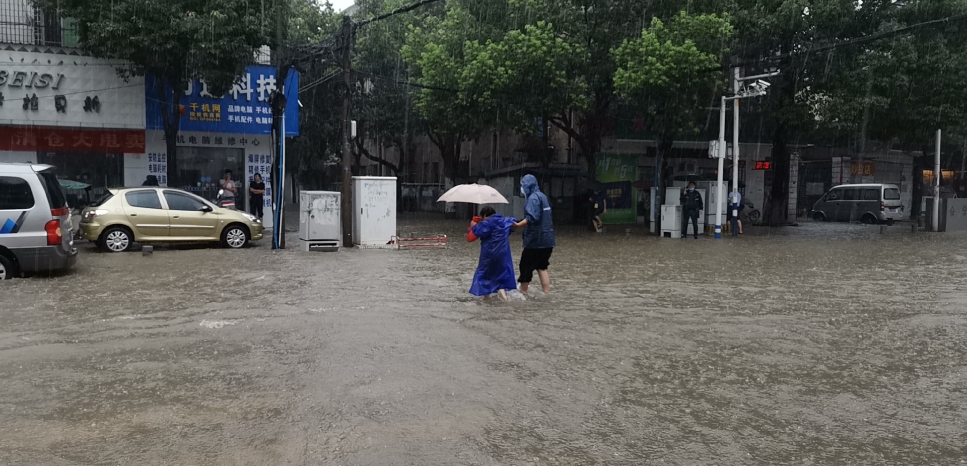 内涝严重,街道成河,民警冒雨疏导指挥交通、赤脚推送受困车辆、及时组织转移受灾群众和部分企业、护送群众安全返家、劝返教育捕鱼者,用实际行动践行了“人民公安为人民”的决心和誓言。