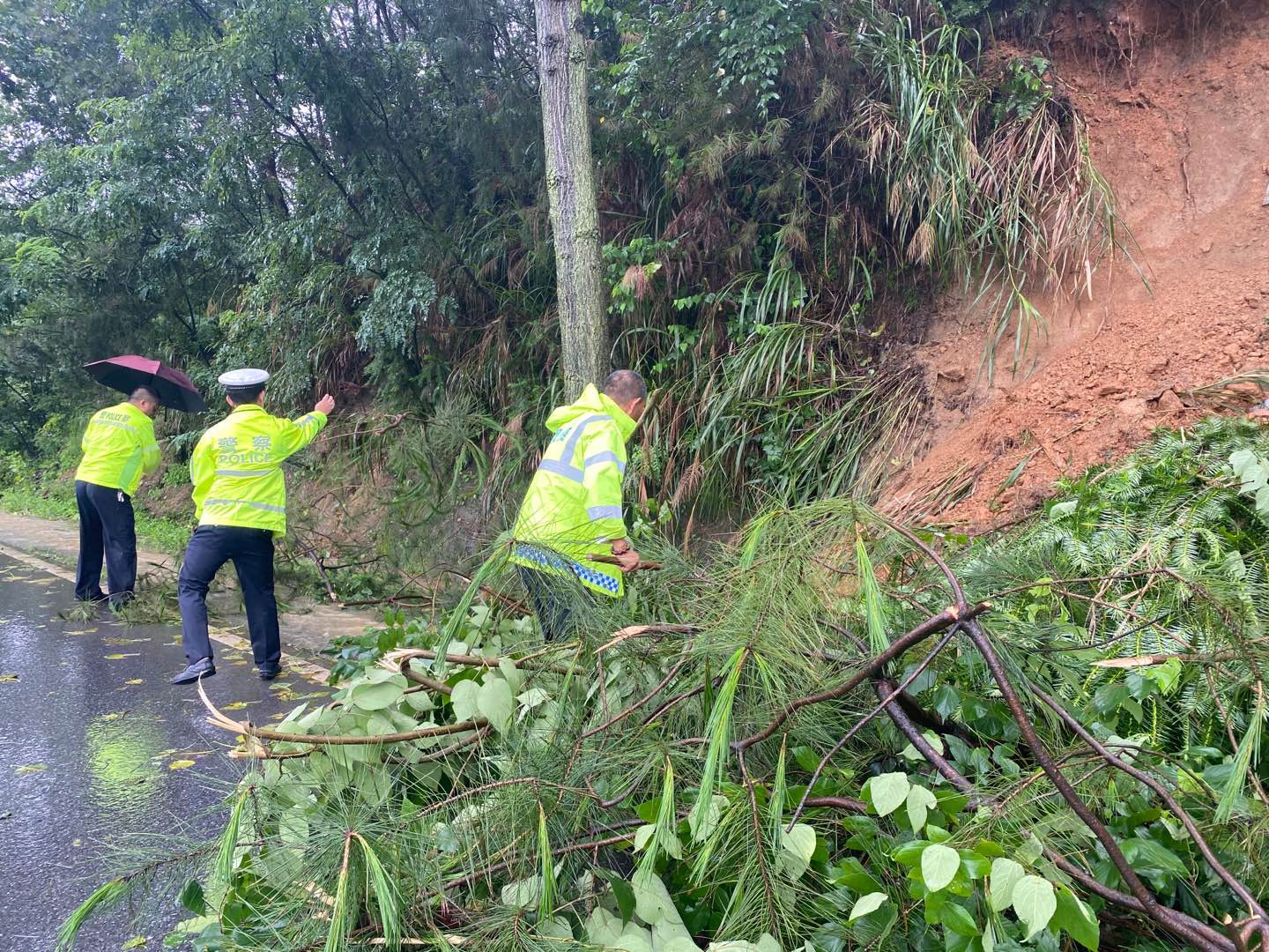 部分山区路段,受强降雨影响,树木连根拔起成了“拦路虎”,滑坡等地质灾害频发导致道路受阻严重。交警大队和乡镇派出所牢固树立“隐患就是事故”的风险意识,不断加大辖区重点路段隐患排查的力度和密度,全力保障强降雨天气路畅人安。