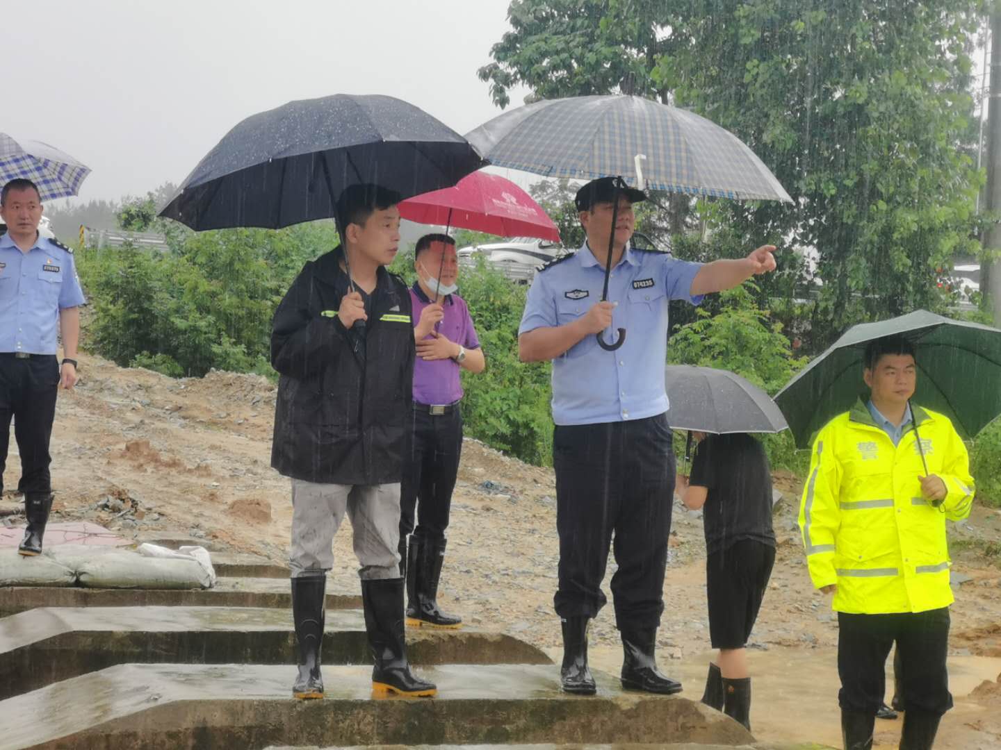 连日来,副县长、公安局长梅军发挥“领头雁”作用,靠前指挥,奔走在但店五桂河、巴河水系但店河段、庙河水库、黄草湖区域等全县灾情严重区域,现场指导并参与抢险救灾工作。各班子成员和相关所队长纷纷发挥“关键少数”的模范带头作用,带领全体民辅警在实战中践行初心使命,让党旗高高飘扬在抢险救灾一线。