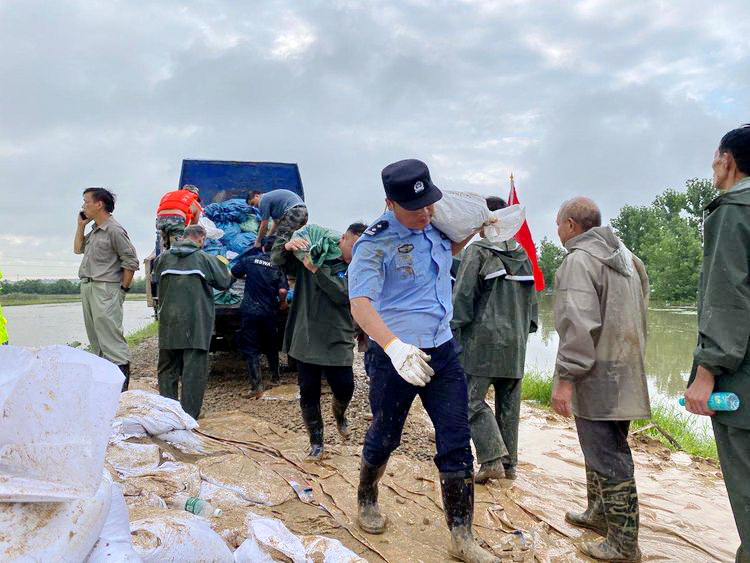 连日来,不论是年长的民警,还是90后甚至00后的队员们,装沙袋、运沙包、搬树、定桩、堵管涌......雨水和着汗水、泥水,队员们双手被磨出血泡,肩膀磨破了皮,双脚浸在水里泡得发白,但是无人言弃。队员们与其他各单位的防汛工作人员密切协作配合,顺利排除了一处又一处险情,确保了人民群众的生命财产安全。