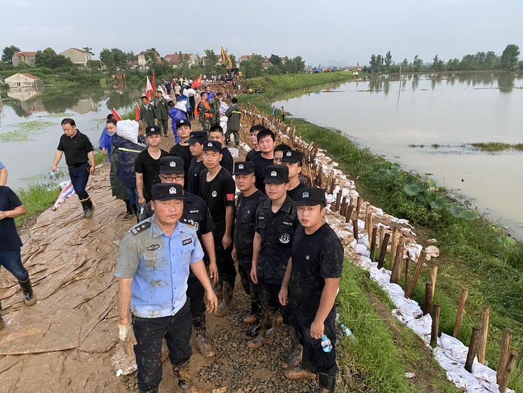 前几日,湖北省团风县连续遭遇多轮强降雨袭击,汛情告急,面对严峻的防汛形势,团风县公安局巡特警大队以党建为引领,将党旗插在防汛救灾一线,始终坚持人民至上、生命至上,勇担使命,冲锋在前,坚守一线,用实际行动践行初心使命,担当防汛救灾的重大责任。