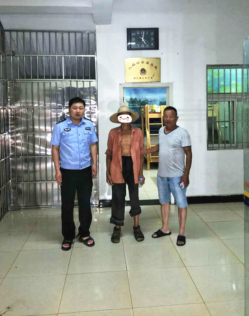 2020年8月1日22时许,回龙山派出所接到群众报警称:回龙山镇四光大道路旁有一位走失老人。接警后,民警立刻赶到现场,面对民警的询问老人一声不吭,只是对着民警不停比划,民警意识到老人是一位聋哑老人,为保障其安全便将其带回派出所进一步核实身份。回到派出所后,民警为老人准备饮用水,在休息过程中老人示意民警拿来了纸笔。根据老人提供的信息,民警最终核实老人名叫余某某(男,79岁,团风县方高坪镇人)。大约晚上22时41分许,回龙山派出所民警与方高坪派出所一起合力将老人安全交到家人手中。