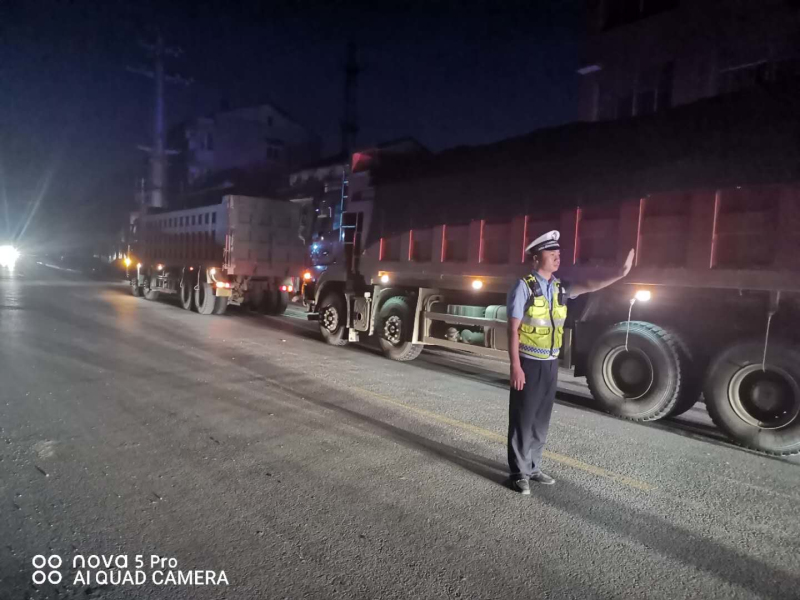 2020年8月14日凌晨1时至5时,团风县交警大队机动中队全体民辅警克服白天工作劳累,发扬不怕吃苦、连续作战的良好队风,联合路政部门积极开展治超行动,针对超限超载车辆为逃避检查利用深夜等错峰时间运输的特点进行突击执法检查,为辖区营造更安全畅通的道路交通环境。