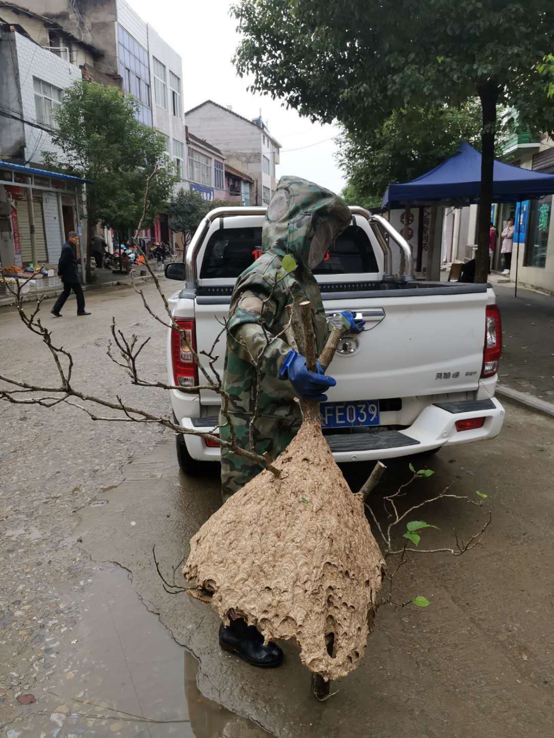 近日,团风县上巴河派出所陆续接到辖区上巴河村等地居民反映:自家的房屋附近发现巨型马蜂窝,马蜂四处飞舞对周边居民生活出行构成了极大的威胁,严重影响大家的正常生活秩序,希望民警帮助处理。