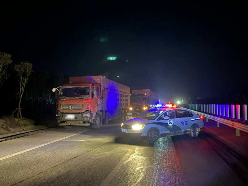 11月3日深夜至4日早晨,交警大队机动中队联合路政执法部门组成治超专班,态势不松、力度不减,全面加大巡控频率和严管力度,采取定点设卡查车与巡逻执勤相结合的方式,加强对辖区道路“重点区域、重点路段、重点时段、重点违法行为”的巡查违纠工作力度,严厉查处货车超限超载、非法改装、涉牌涉证等严重交通违法行为,做到发现一起,查处一起。在开展整治的同时,执勤人员还大力开展道路交通安全等相关法律法规宣传工作,让驾驶员明白超限超载等违法行为的严重危害性以及应承担的法律后果,从而不断增强整治行动的震慑力和影响力。