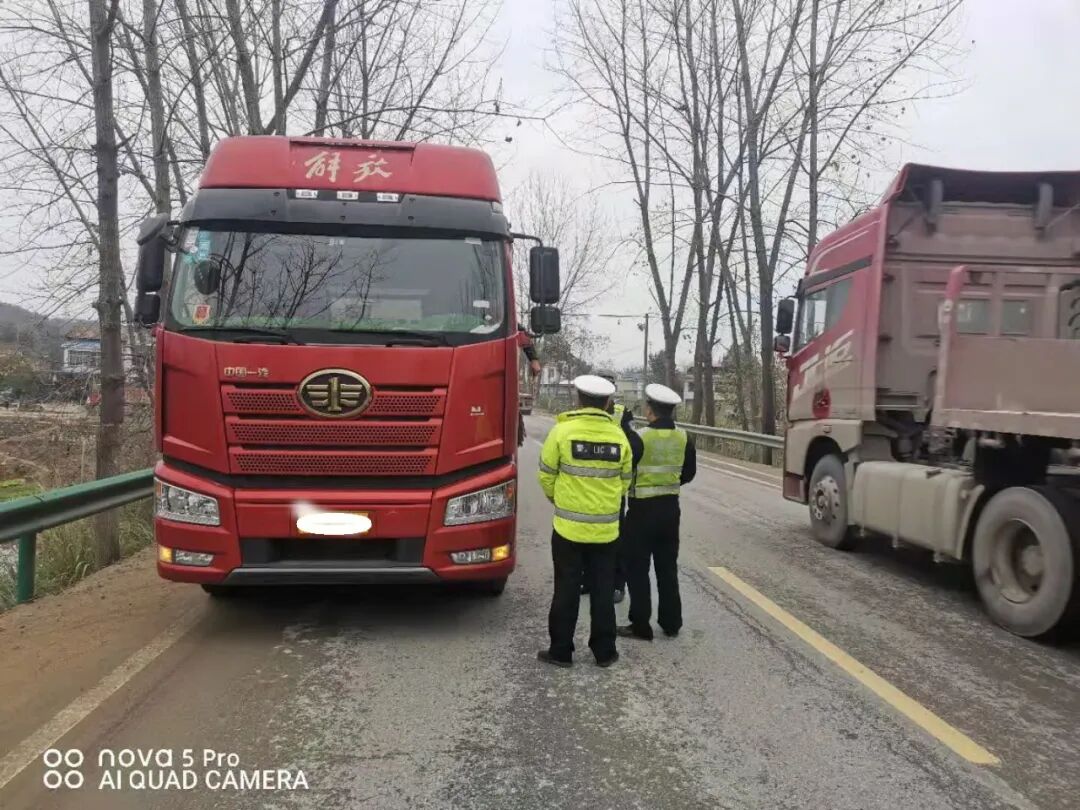 雨天路面湿滑,为确保辖区国省道道路交通安全,团风交警机动中队冒雨在国省道重点路段开展货车超限超载整治行动。