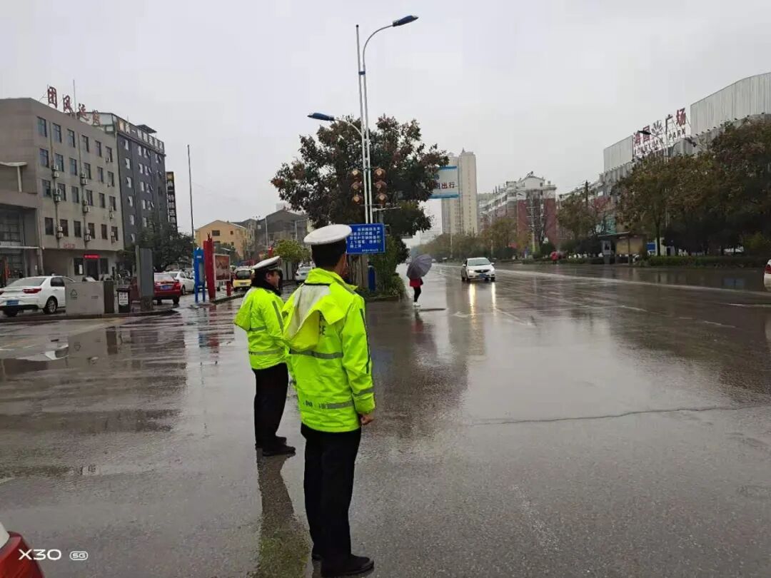 交警大队根据学校周边道路交通环境,在原有警力的基础上增派警力维护学校门口周边停车秩序,对接送学生车辆、社会车辆进行有序疏导,减少车辆滞留,防止交通堵塞;执勤交警护送学生安全过马路,及时提醒驾驶人雨天注意交通安全、减速慢行,确保雨天校园周边道路交通安全,受到了学校师生和学生家长的一致好评。